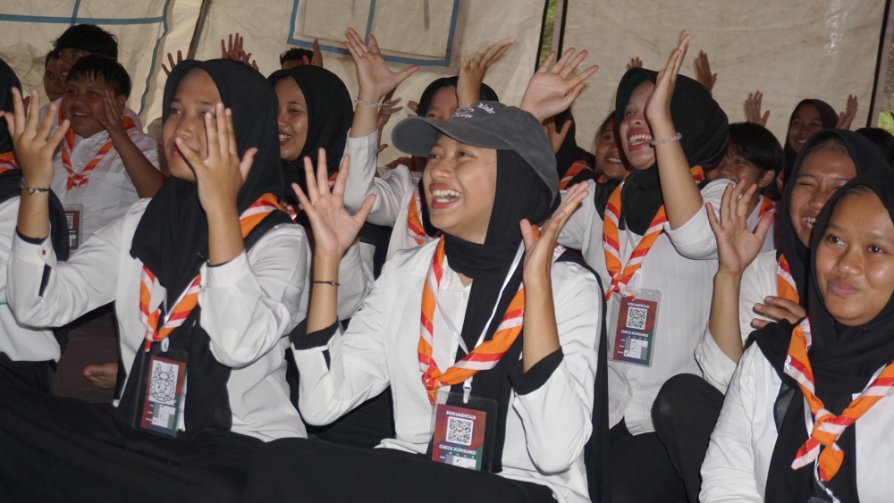 SLEMAN — Bertempat di Tenda Bagong, Bumi Perkemahan Lembah Merapi, Sleman, para peserta Festival Kebangsaan 2025 menerima materi Bahasa Isyarat Sekolah Luar Biasa (SLB), Kamis, 13 November 2025.